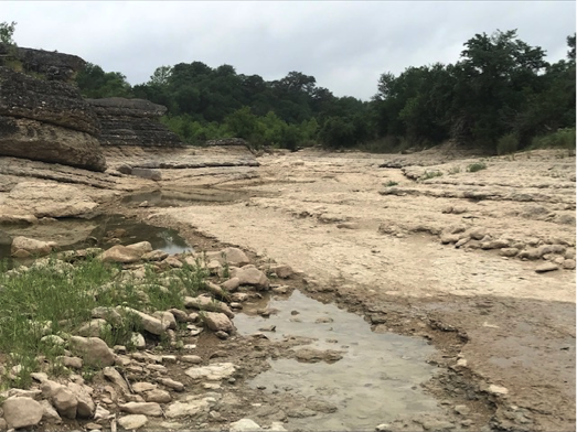 At least since the uplift of the Edwards Plateau relative to the Gulf Basin, Central Texas rivers have flowed generally to the east and southeast. Erosion in their drainage basins has removed a substantial thickness of previously deposited Cretaceous and Tertiary sedimentary layers. Onion Creek is one of the family of rivers and streams that has eroded and removed large quantities of rock from their drainage basins.